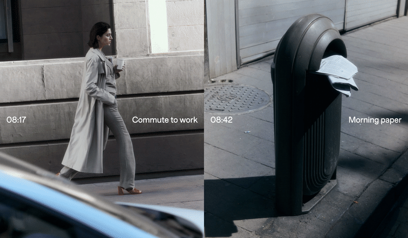 This season, we explore the concept of time, inspired by the rituals and routines of work, life, and everything in between. For our Spring/Summer ‘23 concept ‘9 to 5’, we witness the daily comings and goings of one woman in the city, examining the habits and obsessions that make up her everyday life. Documenting an hour-by-hour account, the series reveals snapshots of her life one moment at a time. From the commutes and conversations that make up her working week, to her weekend errands and escapades, simple pleasures take on new dimensions through a voyeuristic lens.