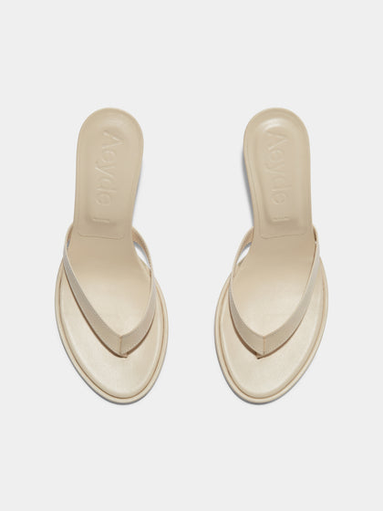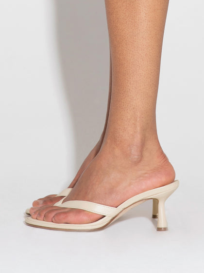 Daphne is a toe-post mule sandal that balances minimalism with a refined finish. Set on a slim hourglass heel and shaped with an almond toe, this pared-back silhouette feels both grounded and elevated.